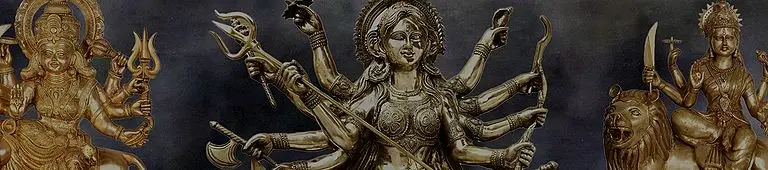 Exotic India's range of idols of this overpowering Indian goddess done up in brass, that also in a variety of finish each more superb than the other, will give you a hard time choosing which to take. Armed to the hilt, the halo of victory aglow around Her head, and quintessentially perched atop the king of the faunal kingdom, our collection of brass sculptures of Goddess Durga is exhaustive and one-of-a-kind.