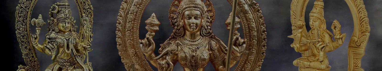 Based on the religious texts, She is seated on Lord Sadashiva, the Cosmic Awareness, who is sustained by Lords- Brahma, Rudra, Indra, and Vishnu. Lord Sadashiva is the Cosmic Awareness. She too is accompanied by Saraswati, the deity of learning, and Lakshmi, the deity of wealth. All 330,000,000 Devas, Lord Ganesha, and Subrahmanya appear to revere her.