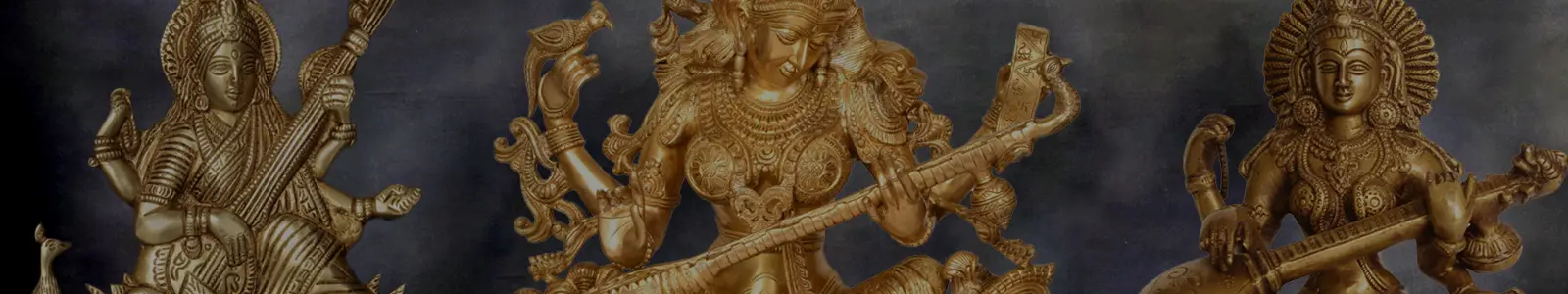 In fact, in multiple Indian homes, Her idol is substituted with a set of books and/or a musical instrument or two. Goddess Saraswati's sculptures in brass come in a variety of postures as well as embossed delicately on Oriental ritual implements.
