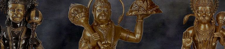 We often see Hanuman statues, in an attitude of meekness and hushed awe. It is this attitude that overtakes him whenever he finds himself in the presence of Rama, his lord. Often to express this feeling of veneration, the sculptures show his right hand raised in the direction of his nose and mouth as if to ensure that his unworthy breath may not taint the unsullied purity of Him before whom he stands.