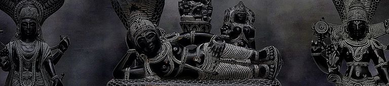 Vishnu dwells in the smooth waters of Vaikunth on a bed made of the loops of the thousand hooded incredible snake, Adishesha of endless dimensions. Goddess Lakshmi, his wife is always by his side. Emblematically the sea represents ecstasy and awareness, the snake for time, variety, want, and deception, and the goddess Lakshmi represents material aspects of life and the powers of creation.