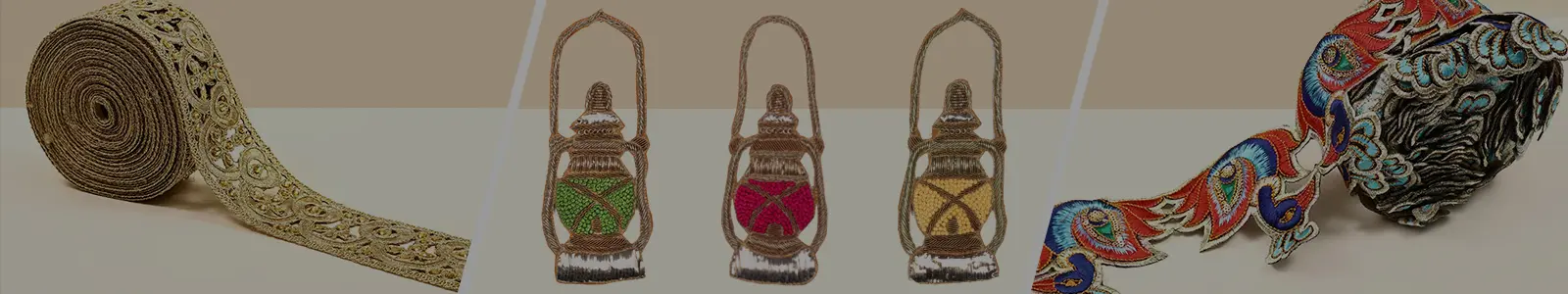 The soul of a piece of textile does not lie in the fabric or the dye or the style. Irrespective of whether it is something wearable or an item of home decor, what adds personality to the merchandise are the embellishments. Ethnic fashion is especially characterised by embellishments that comprise folk motifs and endemic trims. This section consists of a large collection of borders, patches, kinaris, trims, and laces, each handpicked from the recesses of the subcontinent for its beauty and workmanship.