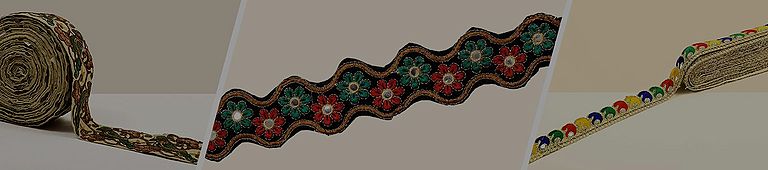 Choose from our range of muted pastels, glamorous metallics, and vibrant tones, each designed to uplift a number of ethnic dresses of a variety of fabrics and colours. The selections in this category are narrow enough to grace the edges of sleeves, traditional necklines, and the more unconventional hemlines. Some of these comprise pure gold and silver thread, worked by hand into the most irresistible patterns that would be the highlight of any dress they are stitched on.