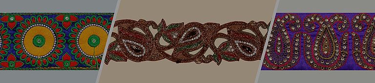 Silken and velvet bases bring out the beauty of the embellishments, be it zardozi cutwork, skillful crochetting, or elegant prints. Some of these come embossed with silver mirrors for added drama. The motifs employed are decidedly folk - chakras, paisleys, local florals - designed that way to be sewn on to Indian suits and saree blouses.