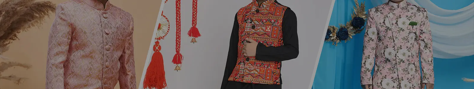 It is known for its distinctive appeal and complementing it with a set of Kurta Pajama appears elegant. We have a wide range of designs and colors available in the style of modi jacket for boys. The classic Nehru jacket fits perfectly and creates a unique style statement. Renowned for its versatility, it can be worn with a kurta or a shirt depending on one’s preference and the occasion.
