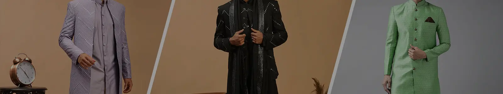 Simply said, one cannot ignore him. Even though sherwanis are now sold in a variety of lengths, the traditional sherwani is still worn at a length that is just a tad bit longer than what would fall just below the knee. This is because the sherwani is meant to be wrapped around the wearer's body rather than draped over it.